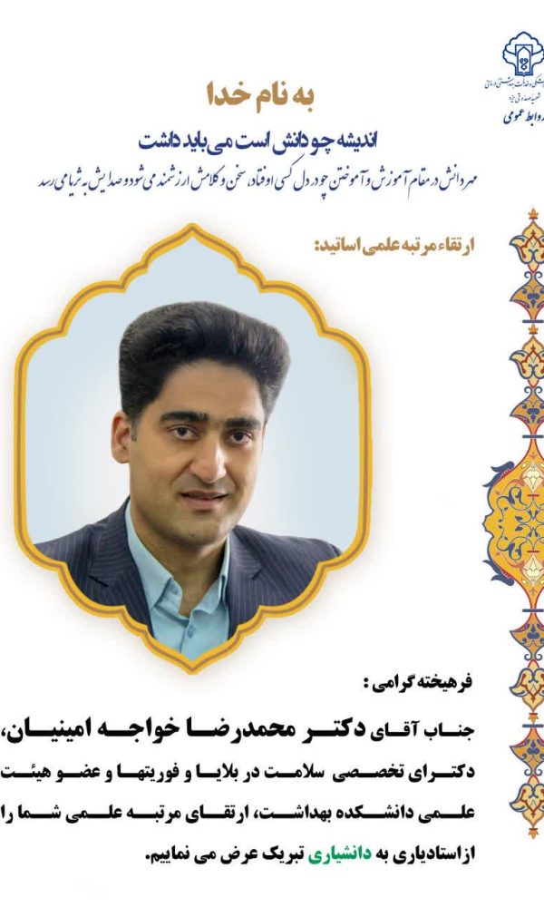 تبریک ارتقاء مرتبه علمیرابط گروه سلامت در بلایا و فوریت ها2 آذر 1404❇️ اندیشه چو دانش است می باید داشت ارتقای مرتبه علمی جناب آقای ... اطلاعات بیشتر